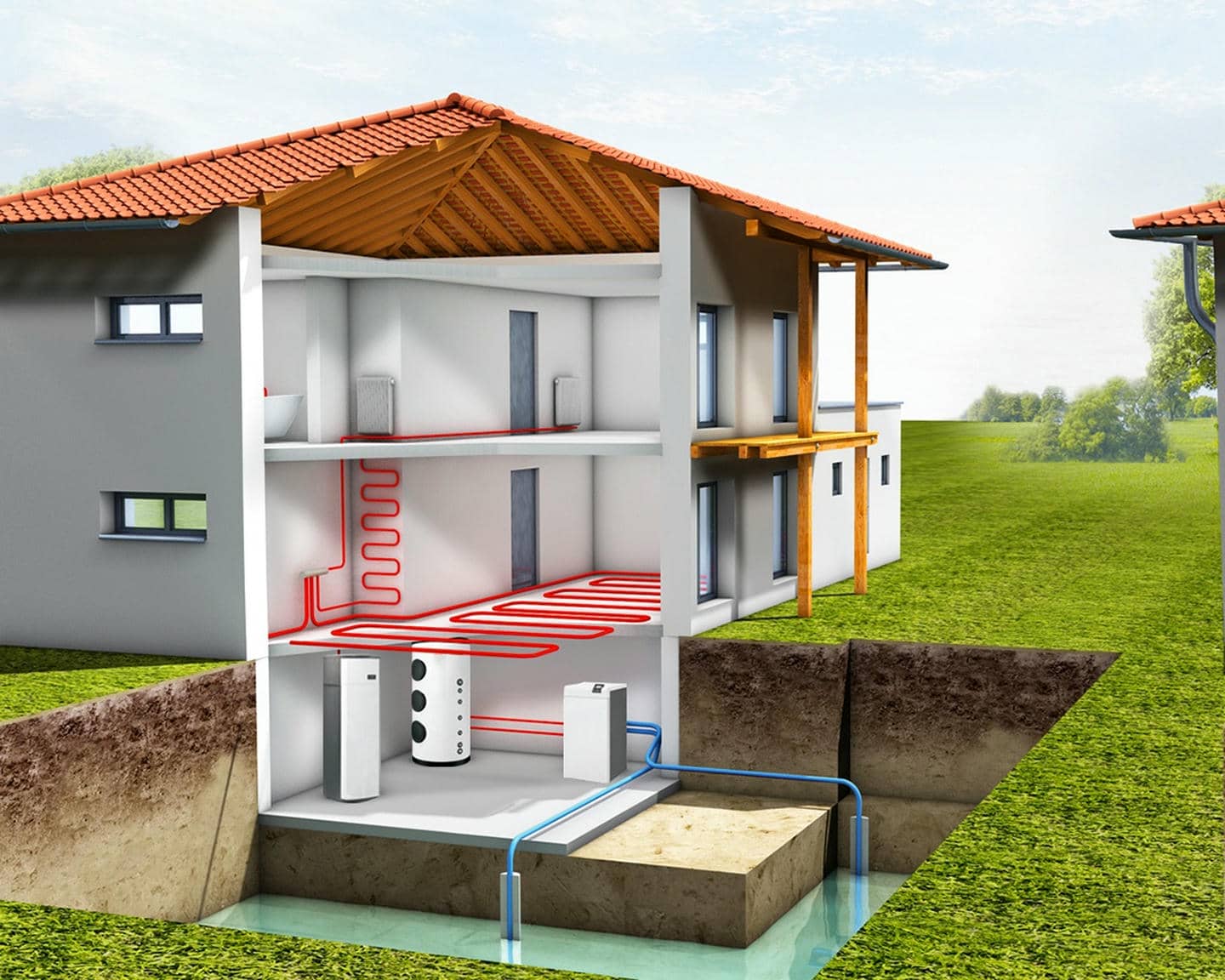 Якщо ж площа обмежена, варто розглянути систему з вертикальними свердловинами для геотермальних насосів. Хоча таке рішення потребує більше будівельних робіт і підвищує витрати на монтаж, воно дозволяє заощадити простір і зберегти навколишній ландшафт.