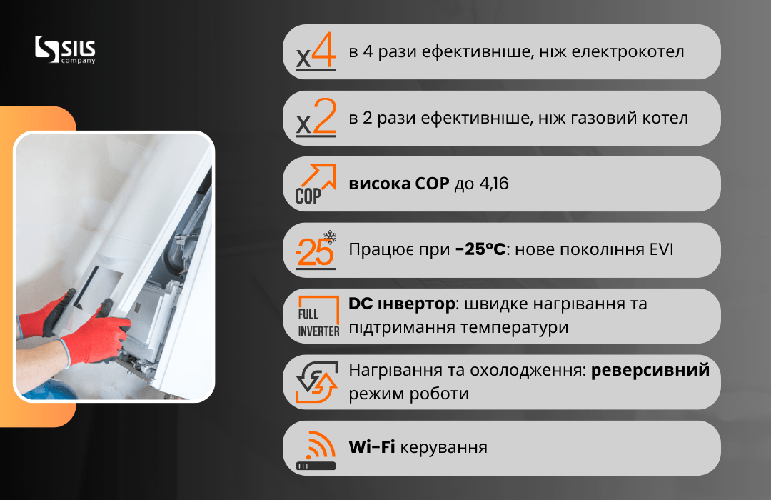 ДОДАТКОВІ ПЕРЕВАГИ: Wi-Fi керування, EVI інвертор, Тихий режим