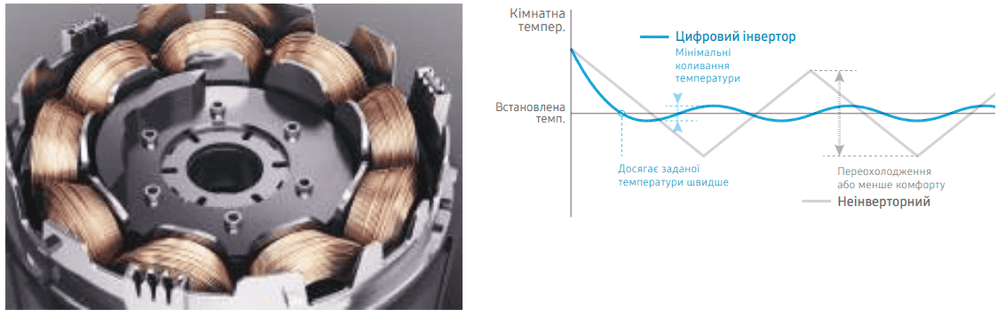 вмикаються, двигун цифрового інвертора автоматично регулює швидкість у відповідь на зміни