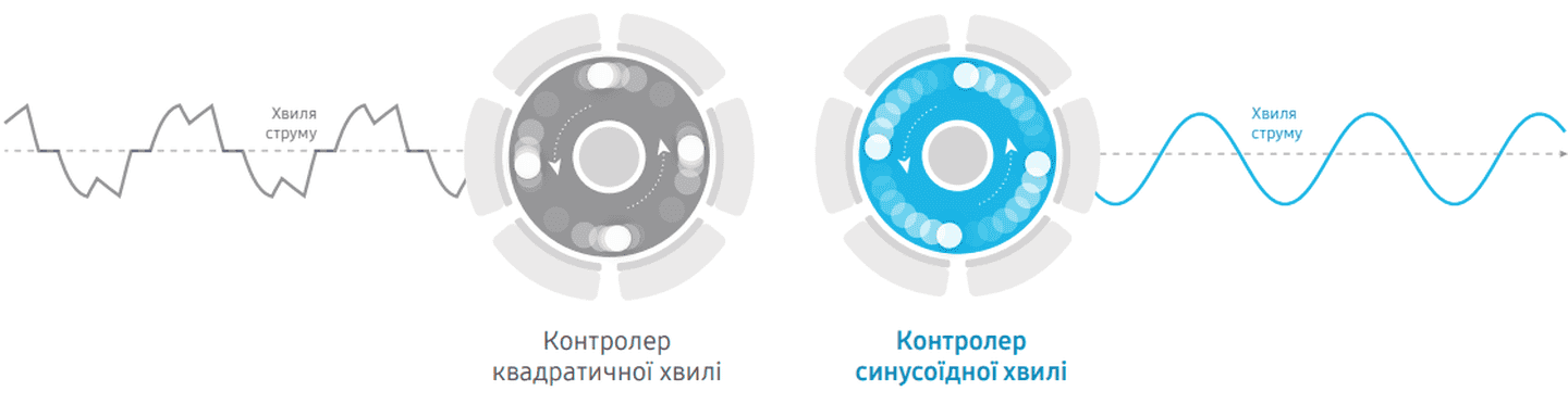 На відміну від контролера квадратичної хвилі контролер синусоїдної хвилі виробляє регулярні