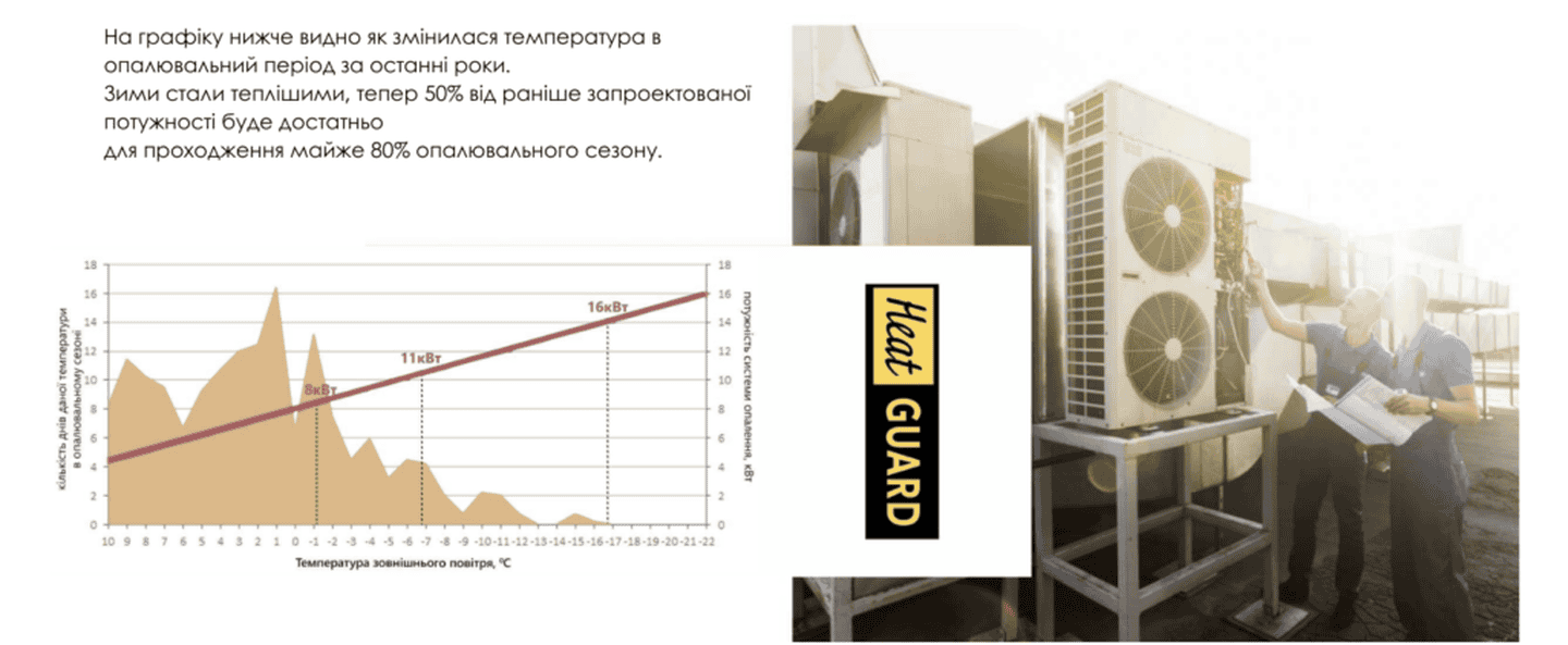 Таким чином, тепловий насос HeatGuard типу «повітря-вода» з одного боку є джерелом опалення, що використовує відновлювальне джерело тепла, а з іншого — пристроєм, що споживає електричну енергію для передачі теплової енергії від зовнішнього повітря. Тепловий насос HeatGuard відзначається високими технічними показниками у своїй галузі.