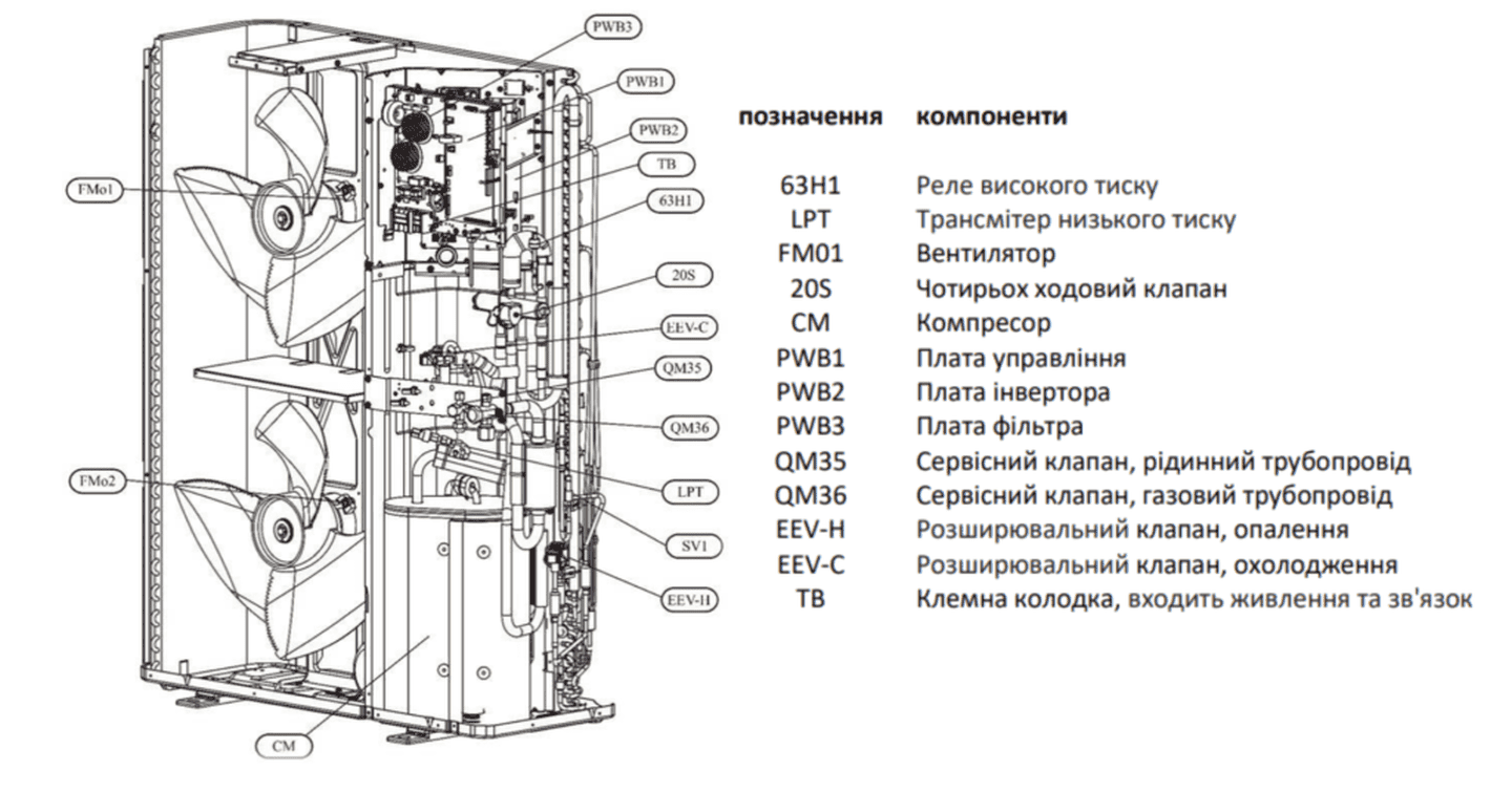 Конструкція зовнішнього блоку Mitsubishi HPC110VNX
