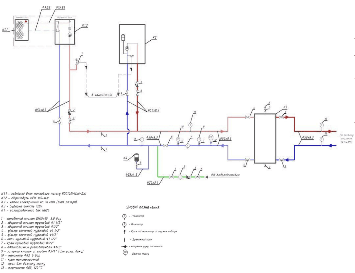 Перемикання з теплового насоса на зовнішній котел можливе за наступних умов: