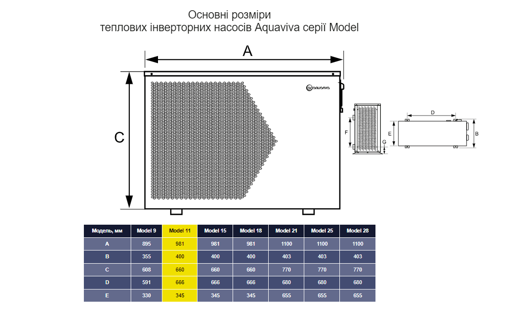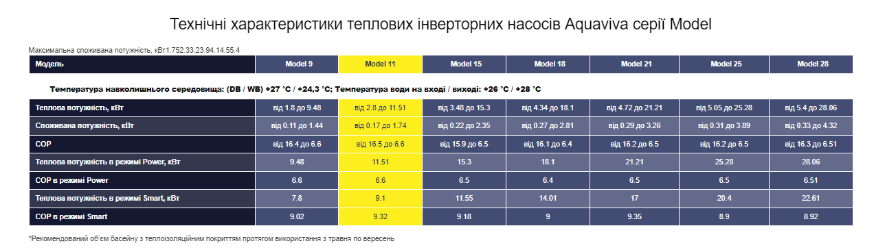 ПРИЗНАЧЕННЯ: Інвенторний тепловий насос Aquaviva Model 11 для басейну