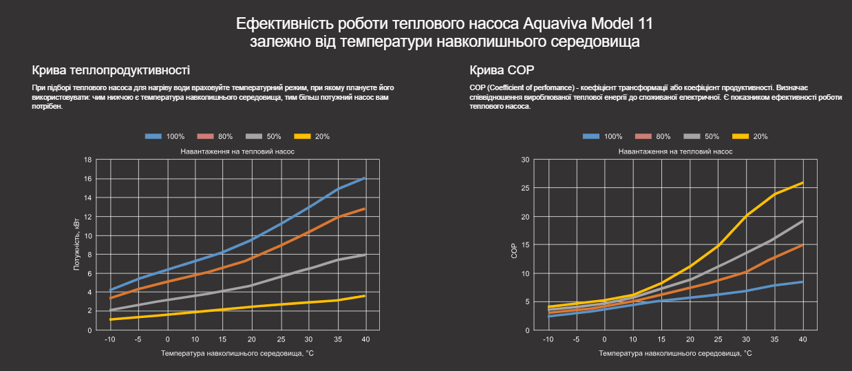 Тепловий насос Aquaviva Model 11 має три режими роботи: