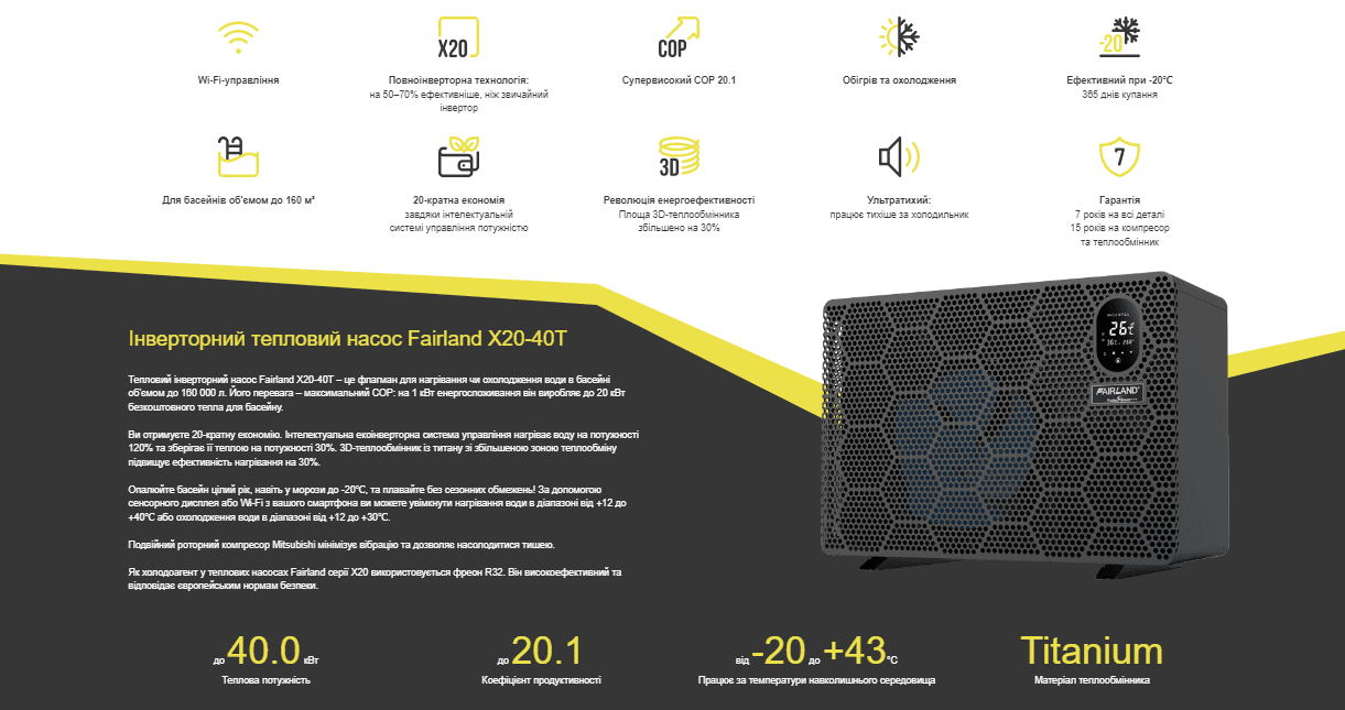 Чому варто вибрати тепловий насос Fairland X20-40T?