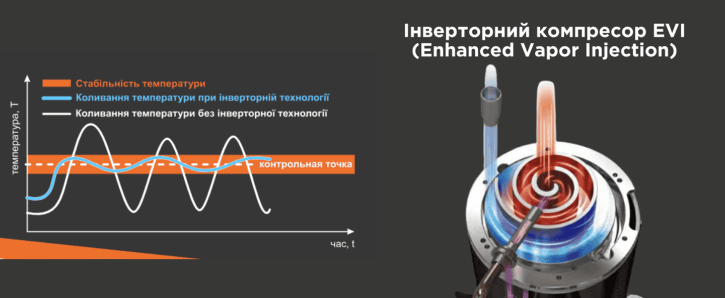 • Енергоефективність COP: до 4.1 (отримання 4.1 кВт тепла на кожен витрачений кВт електрики)
