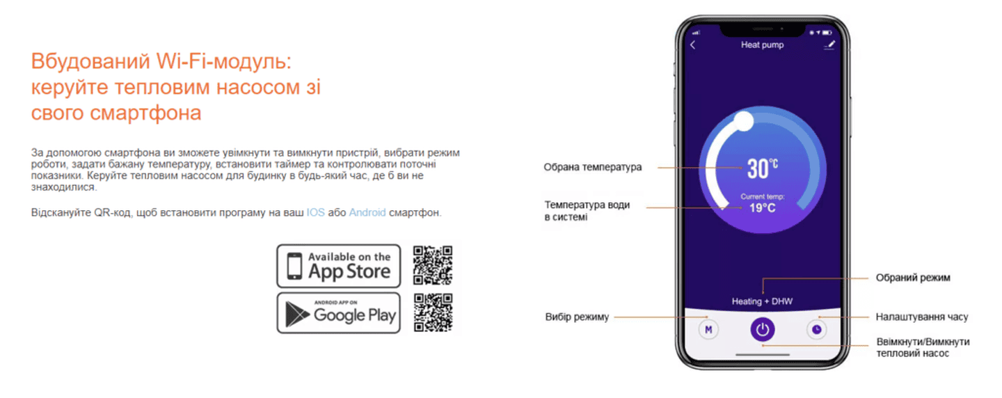 • Температура нагріву води: до +55°C навіть при -25°C на вулиці