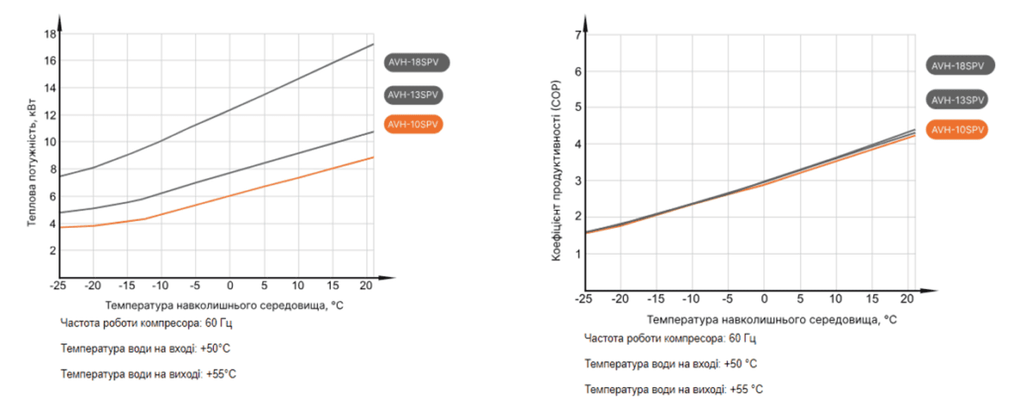 • Висока продуктивність: Навіть при низьких температурах зовні, система підтримує ефективне опалення та нагрів води.