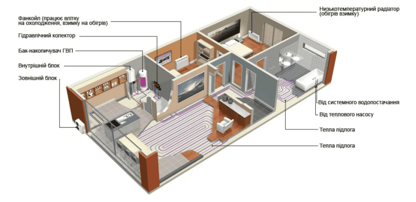 СХЕМА ВСТАНОВЛЕННЯ ТЕПЛОВОГО НАСОСУ