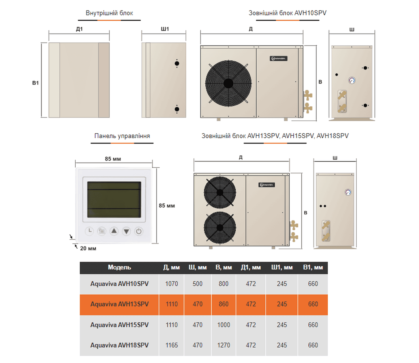 Aquaviva AVH13SPV – це надійне, економічне і сучасне рішення для підтримання комфортного мікроклімату у вашому будинку протягом всього року.
