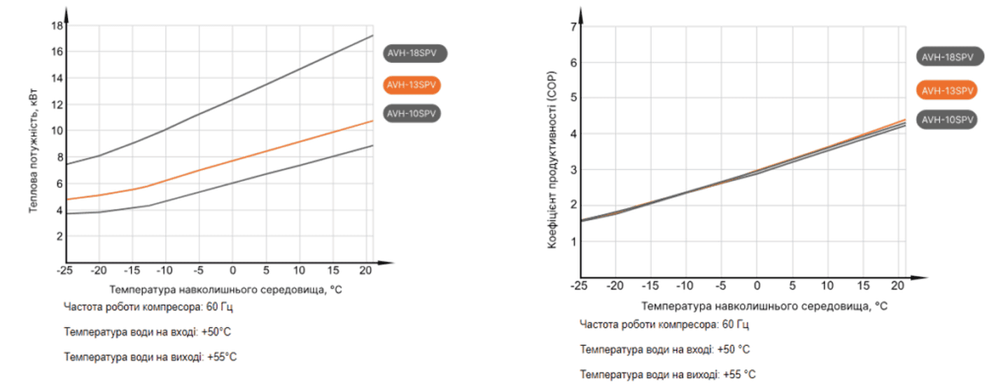 • Висока продуктивність: Навіть при низьких температурах зовні, система підтримує ефективне опалення та нагрів води.