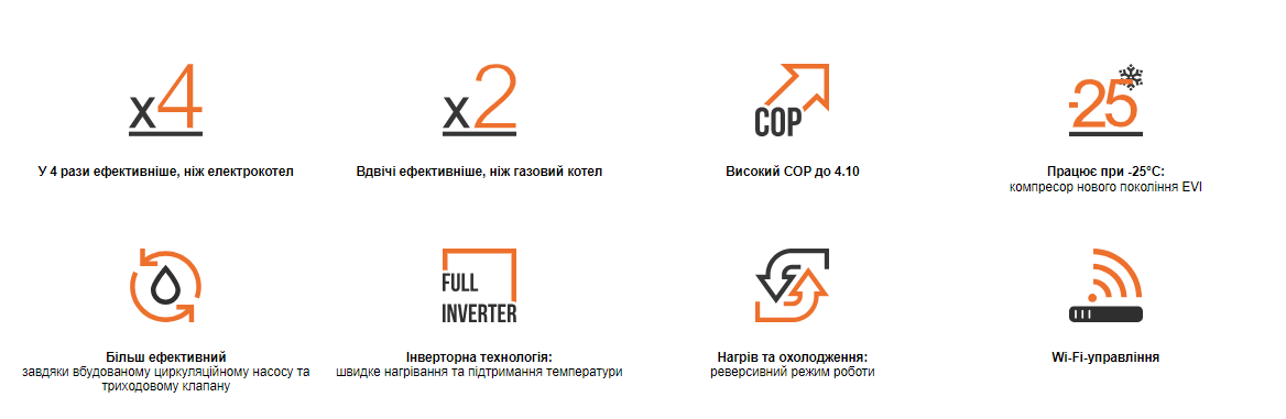 • Температура нагріву води: до +55°C навіть при -25°C на вулиці