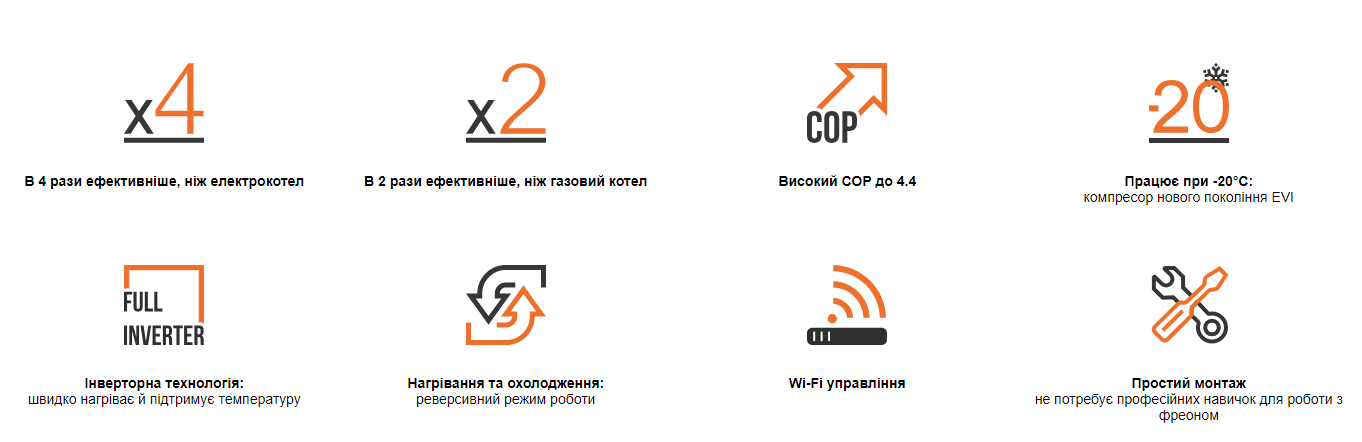 • Температура нагріву води: до +60°C навіть при зовнішній температурі -20°C