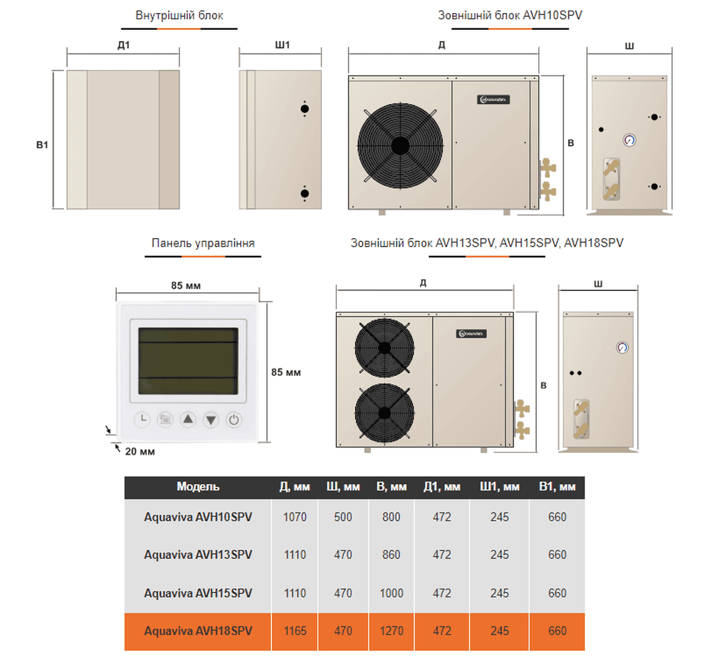 Be the first to review “Інверторний тепловий насос Aquaviva AVH18SPV (18,3 кВт), до -25°C, спліт-система до 180 кв.м, 220 В, з циркуляційним насосом та триходовим клапаном”
