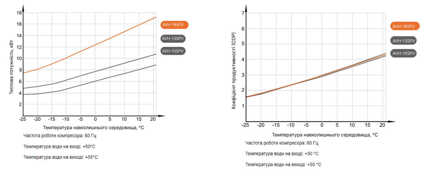 • Висока продуктивність: Навіть при низьких температурах зовні, система підтримує ефективне опалення та нагрів води.