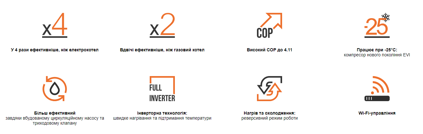 • Температура нагріву води: до +55°C навіть при -25°C на вулиці