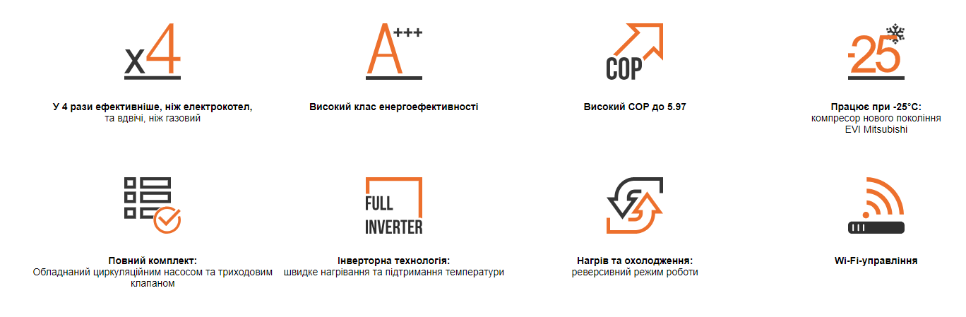 Енергоефективність: до 5.97 кВт теплової енергії на 1 кВт електроенергії