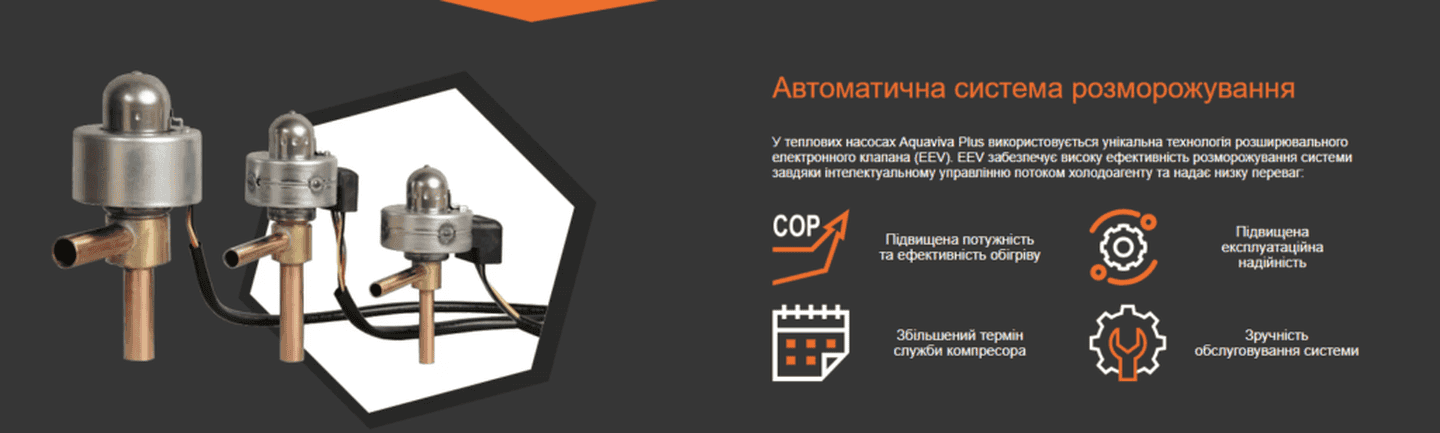 Aquaviva Plus використовує інтелектуальну систему розморожування з розширювальним електронним клапаном (EEV), яка забезпечує підвищену ефективність роботи навіть при мінусових температурах. Система не лише оптимізує роботу насоса, але й продовжує термін його експлуатації, підвищуючи надійність та зручність у використанні.