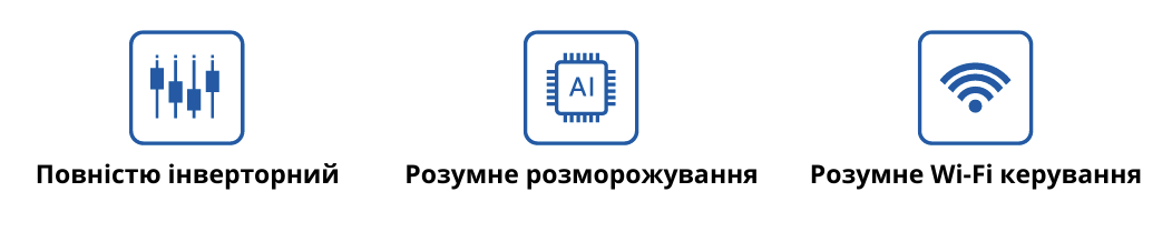 Працює при -15°С/+43°С, низький рівень шуму, інверторний компресор постійного струму Mitsubishi