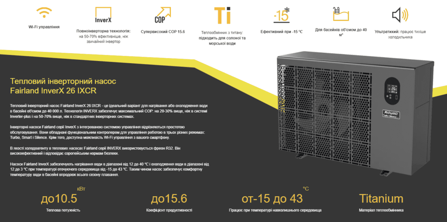 Чому варто вибрати тепловий насос Fairland InverX 26 IXCR?