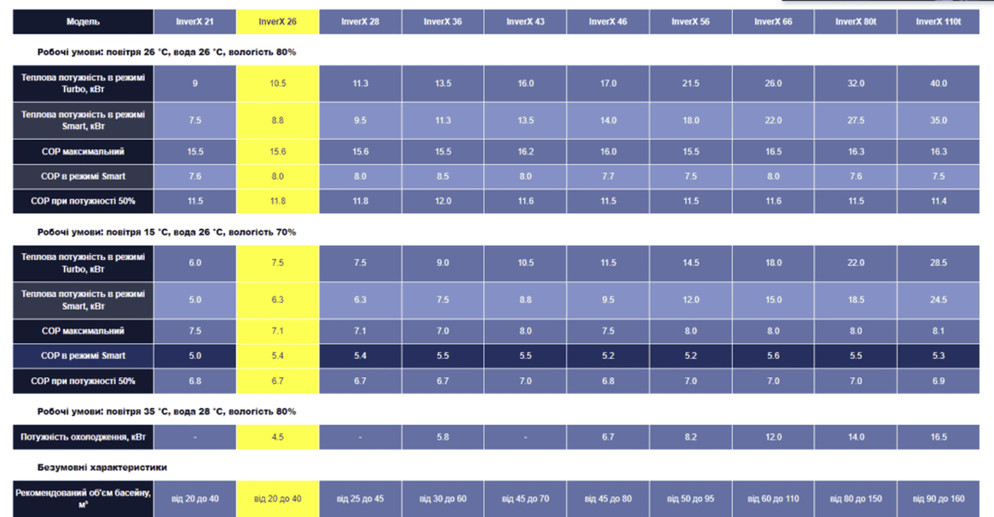 ПРИЗНАЧЕННЯ: Тепловий насос Fairland InverX 26 для басейну