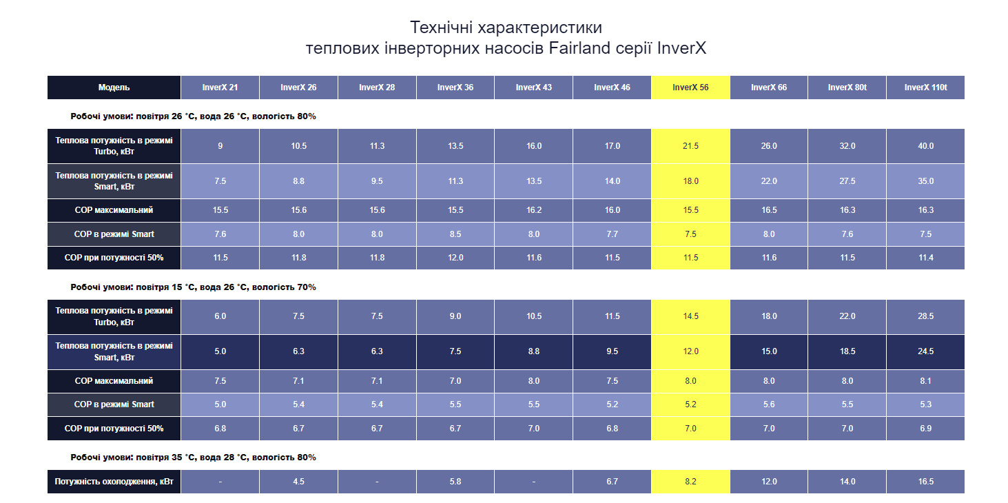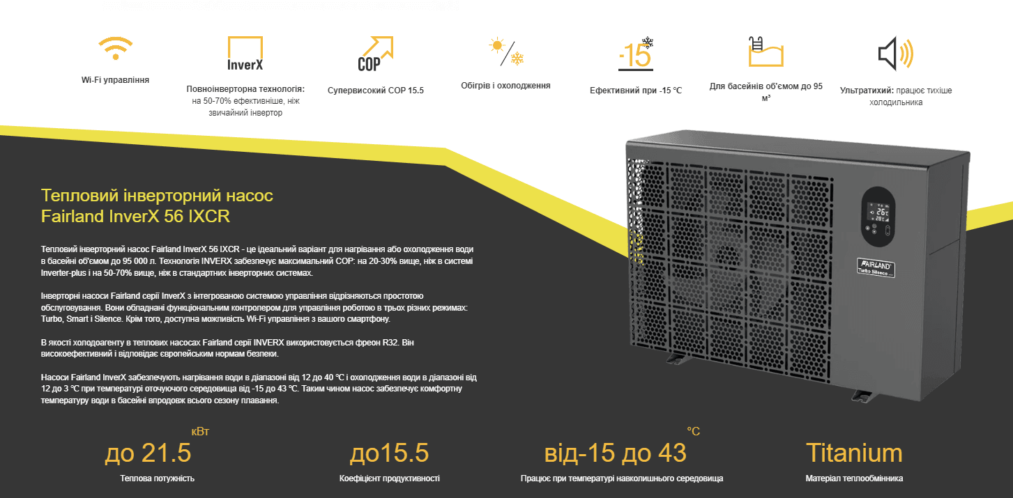 ПРИЗНАЧЕННЯ: Тепловий насос Fairland InverX 56 для басейну