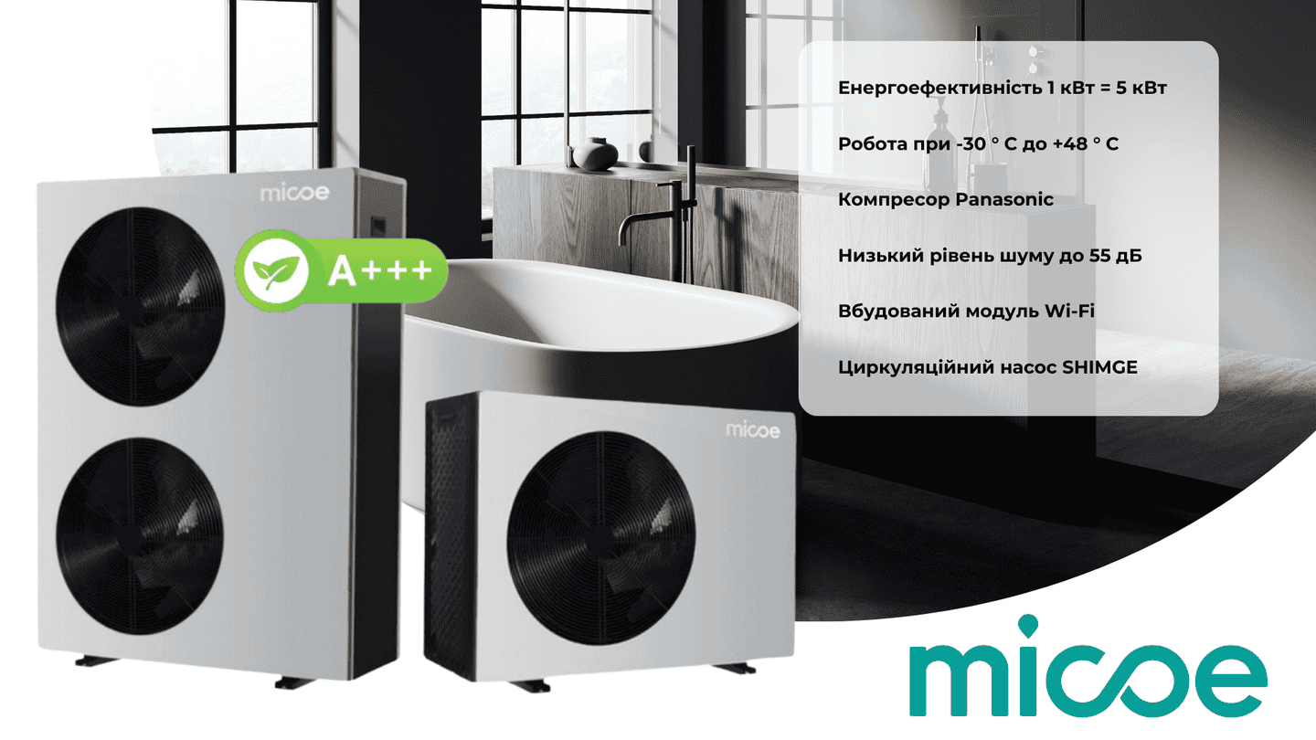 Побутовий тепловий насос Micoe MMHP-026B2 – ефективне рішення для опалення та гарячого водопостачання