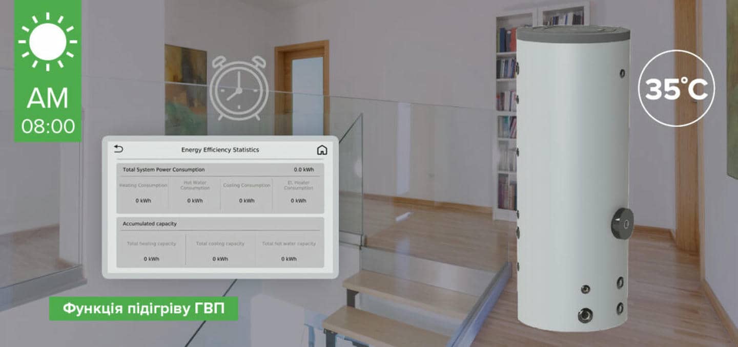 Ця функція дозволяє налаштувати систему на мінімальні параметри роботи під час вашої відсутності. У режимі “відпустки” тепловий насос підтримує мінімально необхідну температуру в приміщенні, забезпечуючи економію енергії та захист системи.