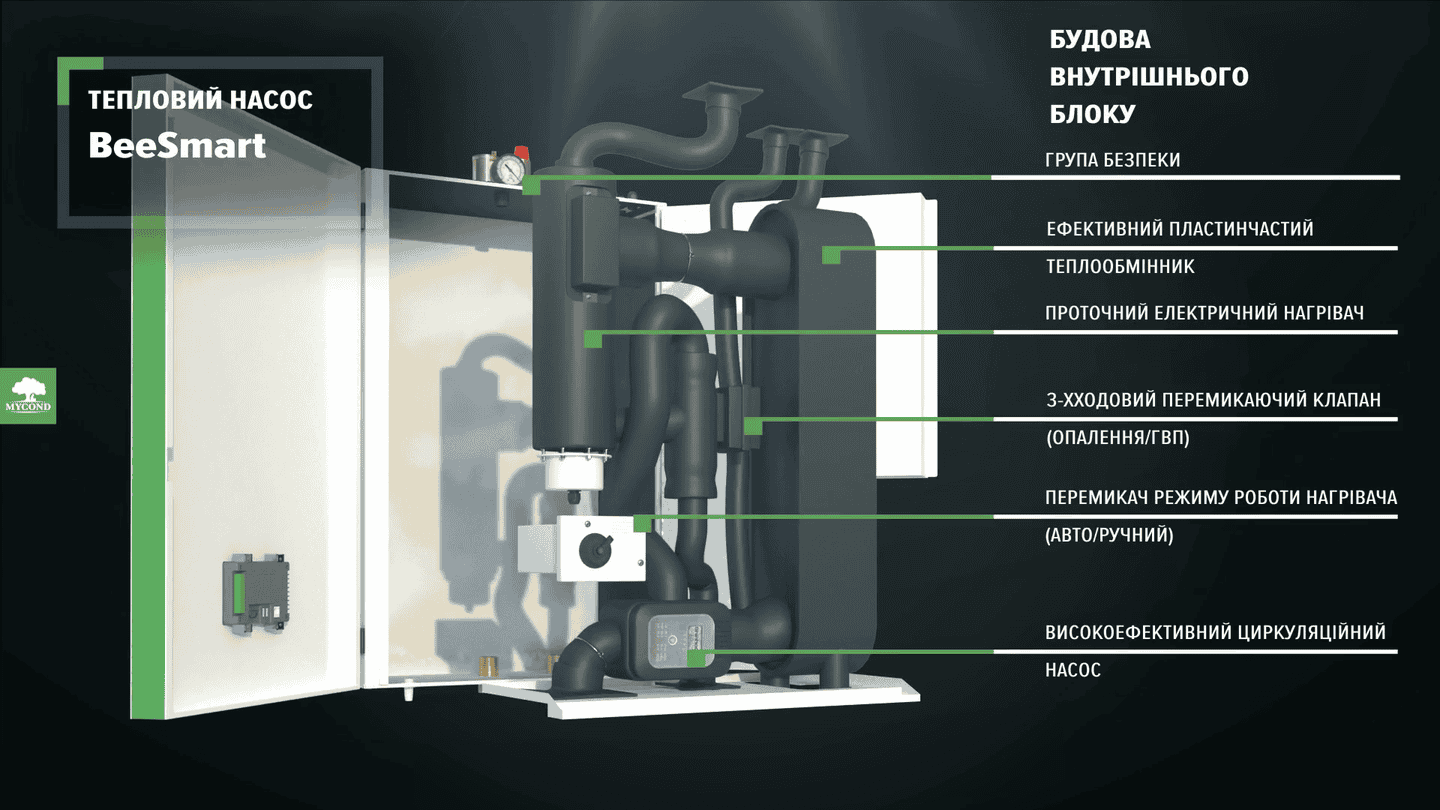 ПРИЗНАЧЕННЯ: Mycond BeeSmart тепловий насос для опалення, охолодження та гарячого водопостачання