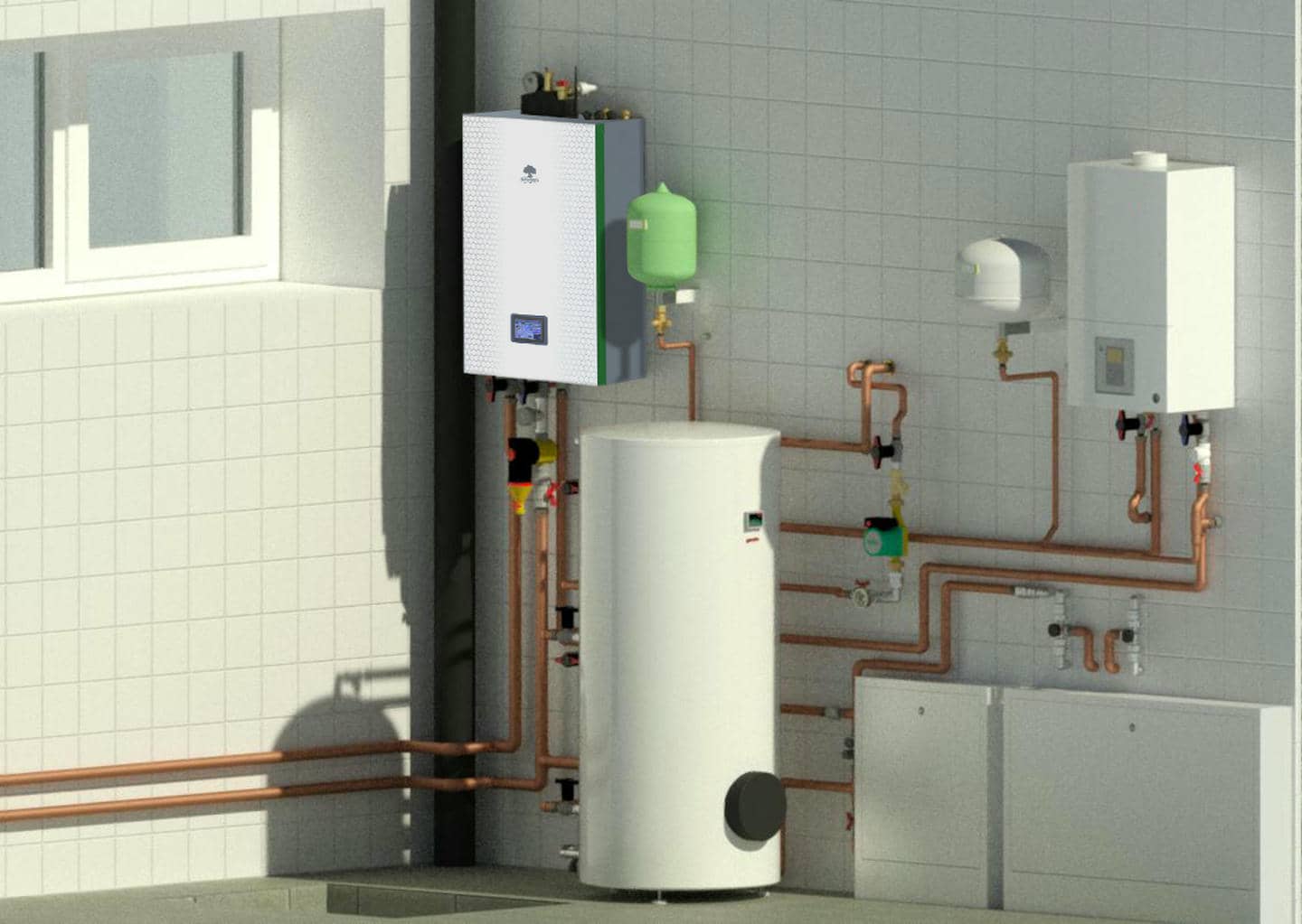 • Перемикаючий клапан для автоматичного переключення між режимами опалення та нагріву води.
