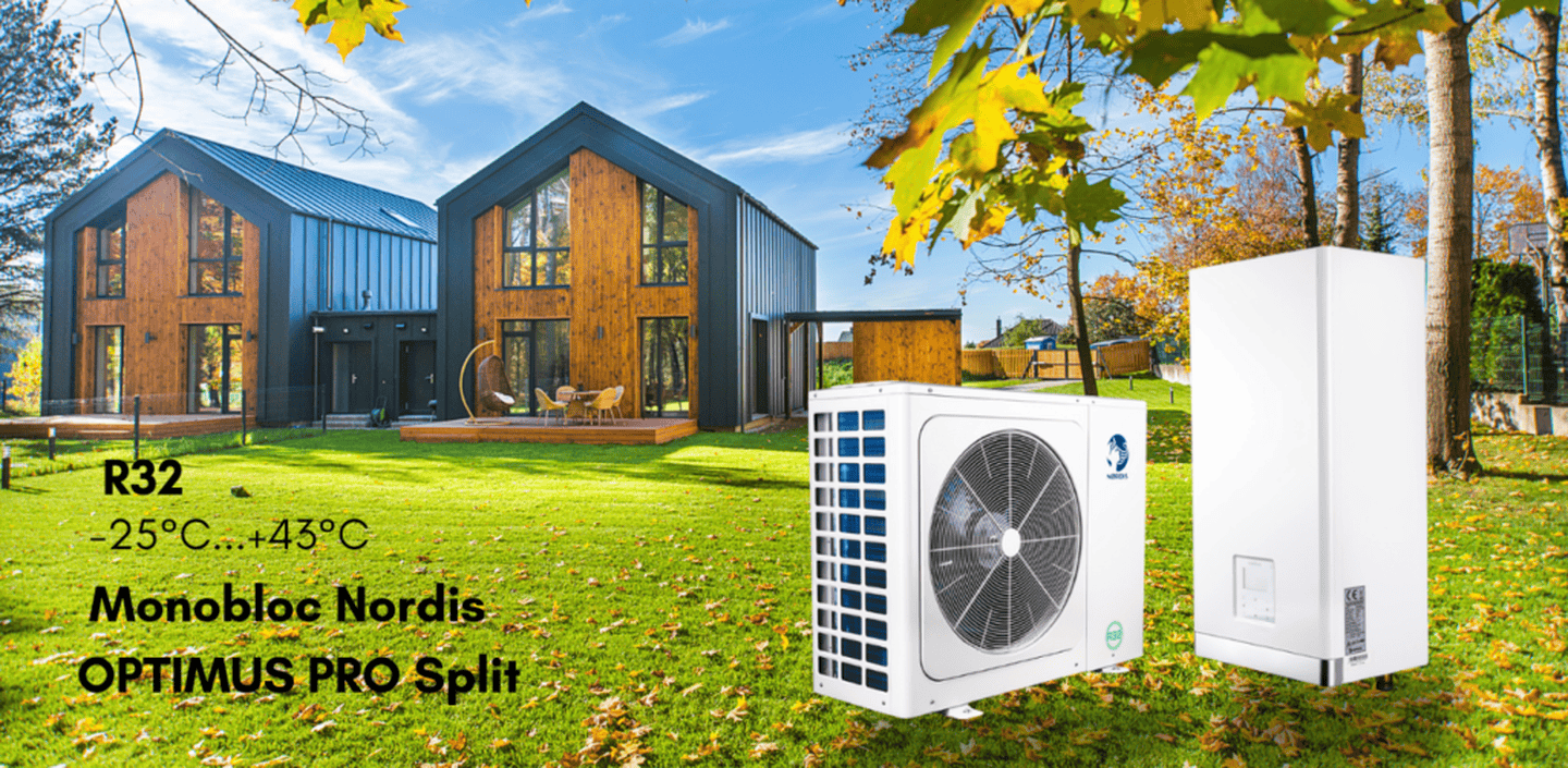 Серія NORDIS Optimus Pro Split заснована на технології постійного струму, яка оптимізує частоту обертання двигуна і забезпечує комфортну кількість тепла в приміщенні з найнижчим споживанням електроенергії, навіть коли зовнішня температура опускається до -25 °C. Теплові насоси без вбудованих баків з гарячою водою мають внутрішні блоки з трьома потужностями і сумісні з теплою підлогою, радіаторами, системами фанкойлів та побутовими водонагрівачами, що дозволяє уникнути значних інвестицій у переробку всієї системи.