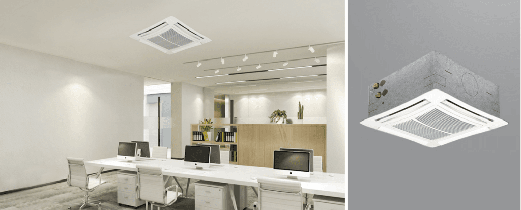 Касетний фанкойл Idea IKA-600R-SA6 (5,4 кВт), площа до 60 м², чотирьохсторонній з дренажним насосом (панель IBQ4-02 R-SA6 + пульт ДУ в комплекті) |
