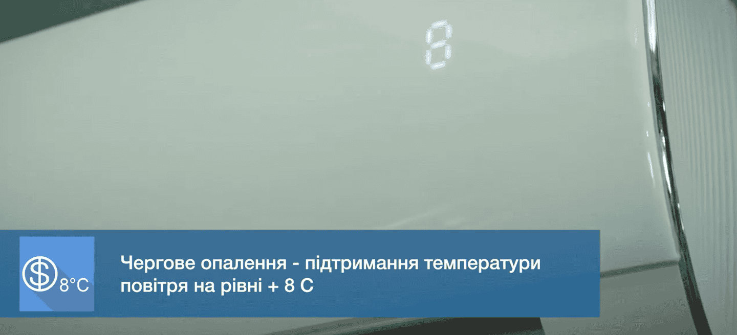 • Функція +8°C — запобігає замерзанню приміщення у разі тривалої відсутності, підтримуючи базову температуру з мінімальним енергоспоживанням.