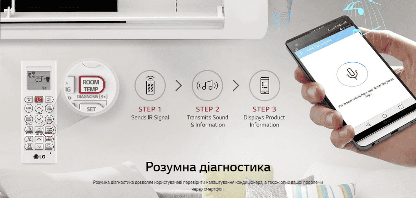 Розумна діагностика дозволяє користувачеві перевірити налаштування кондіціонера, а також опис вашої проблеми через смартфон.