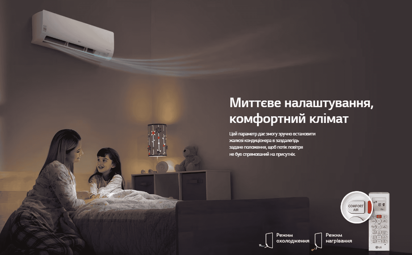 Режим «Comfort Air» дозволяє направляти повітряні потоки таким чином, щоб, по-перше, виключити мертві зони, а по-друге, уникнути прямого попадання повітряного потоку на людину.