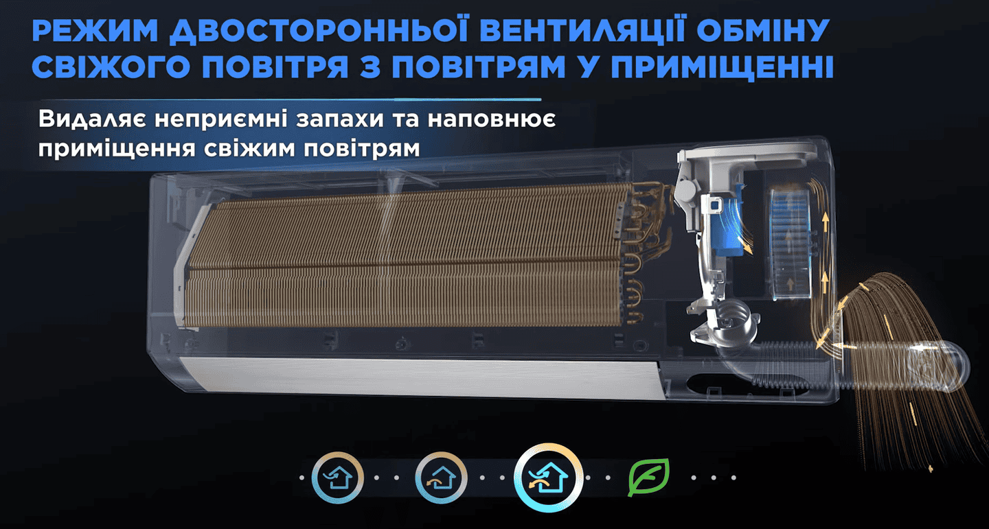 Активуючи інтелектуальний ЕКО режим, кондиціонер автоматично працює в найбільш ефективному та енергозберігаючому режимі, водночас підтримуючи комфортні умови в приміщенні.