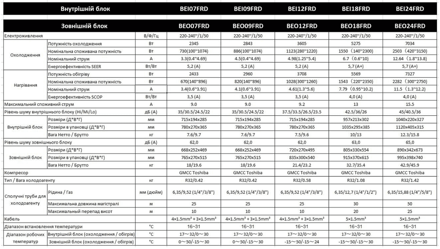 Кондиціонер Bergen Fjord BEI24FRD/BEO24FRD до 70 кв.м, 7 кВт, фреон R32, інверторний