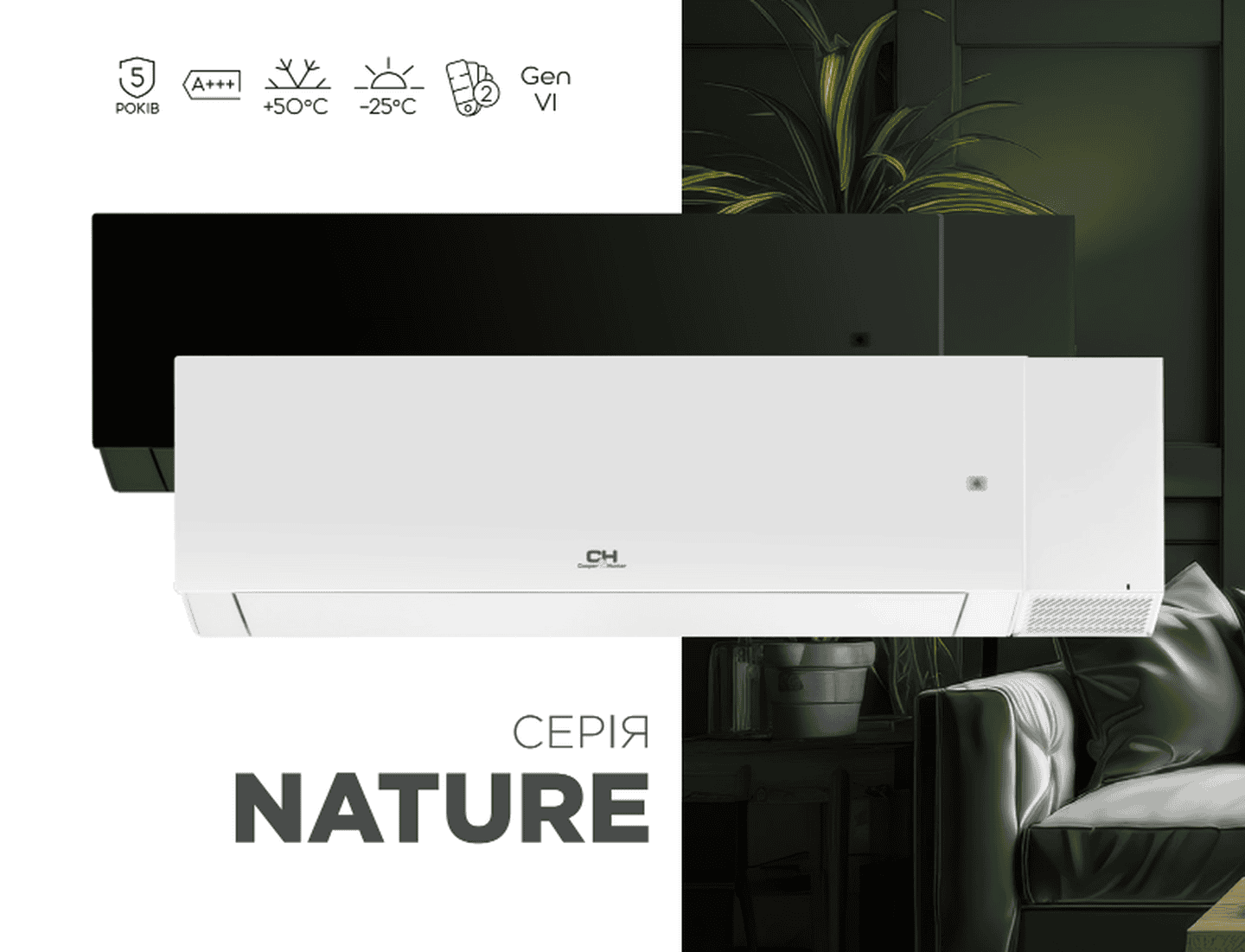 Cooper&Hunter NATURE – це більше, ніж кондиціонер чи тепловий насос. Це ваш персональний помічник, який створює здоровий, комфортний і безпечний клімат у приміщенні. Завдяки інноваційним технологіям, стильному дизайну та бездоганній енергоефективності, серія NATURE стане незамінною частиною вашого сучасного дому.