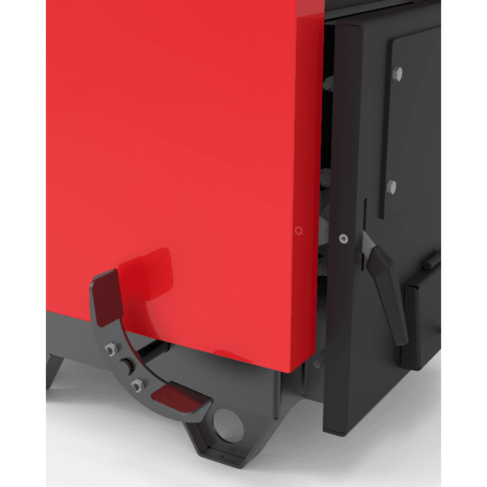 На передньому боці котла розміщені люки з дверцятами для завантаження палива, вигрібний люк для шурування палива і видалення шлаків, люк для видалення попелу і люк для чищення димових каналів.