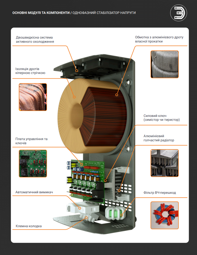 10. Робота без вентиляторів: Моделі стабілізаторів АНТС У мають пасивне охолодження, що усуває проблеми з шумом вентиляторів, роблячи стабілізатор повністю безшумним.