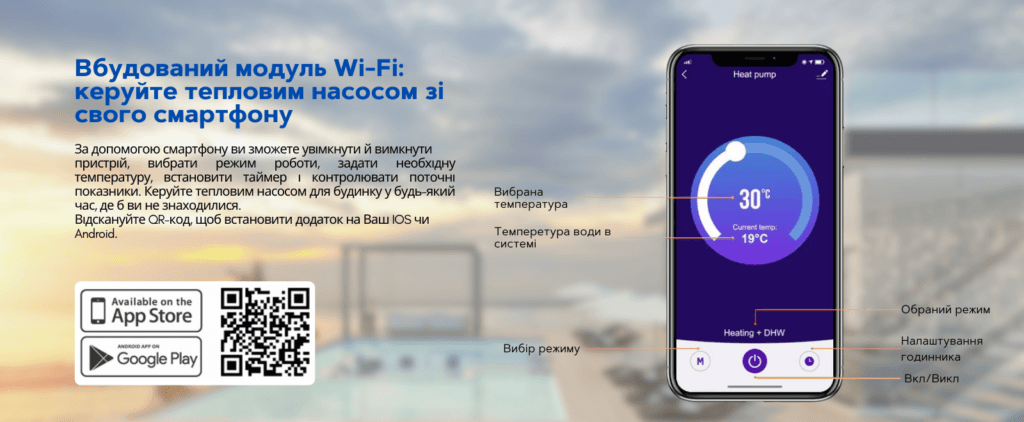 У режимі обігріву вентилятори зовнішнього блоку насоса працюють із регульованою швидкістю.