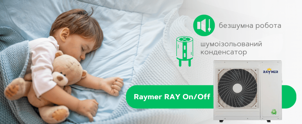 - Тепловий насос Raymer має безшумну роботу, що дає змогу його використання в різних житлових приміщеннях, не порушуючи комфорту.