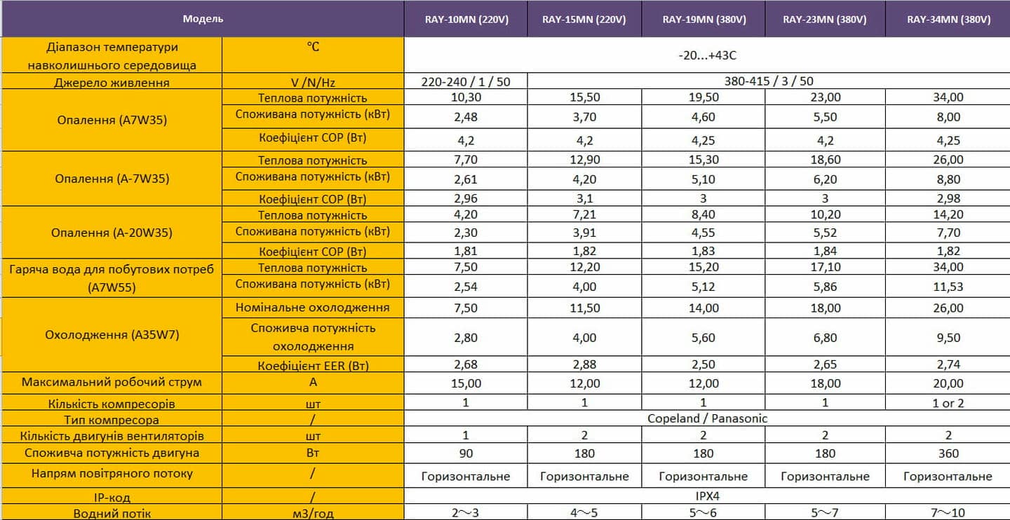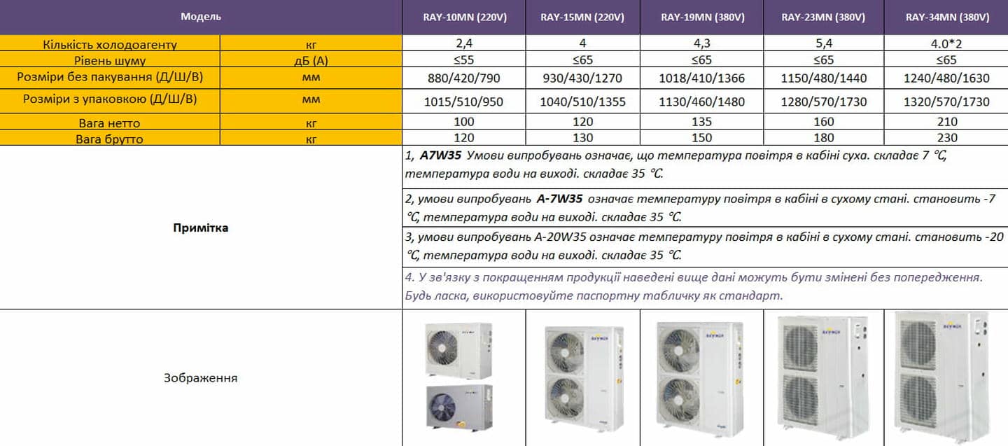 - Залежно від площі приміщення і потреб, тепловий насос MN Raymer доступний у різних варіантах потужності, даючи змогу вибрати оптимальний варіант для приміщень від 40 до 350 квадратних метрів.