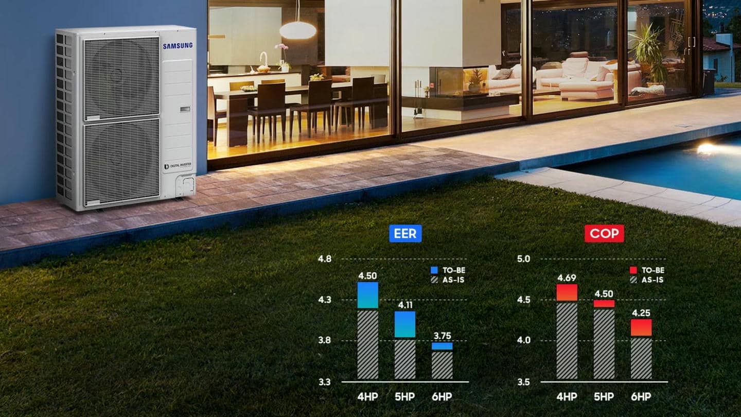 ⚡ Енергоефективність: технологія DVM S у цій системі теплового насоса Samsung забезпечує високу енергоефективність, допомагаючи вам заощаджувати на комунальних послугах, одночасно зменшуючи вплив на навколишнє середовище.