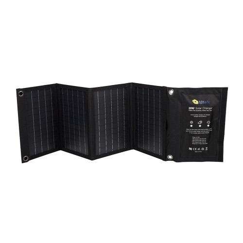 Монокристалічна сонячна панель ALTEK ALT-28 потужністю 28Вт з трьома виходами USB є оптимальним варіантом для мандрівників, рибалок, мисливців і всіх кому важливо мінімальна вага та компактні розміри при максимальній ефективності. За допомогою даної панелі можна заряджати павербанки, смартфони, смарт годинники, без дротові навушники та інші малопотужні пристрої. Панель дуже компакта та легка, без проблем можна покласти її у внутрішню кишеню рюкзака, кофр мотоцикла і навіть в розкладеному стані не займе багато місця в надувному човні.