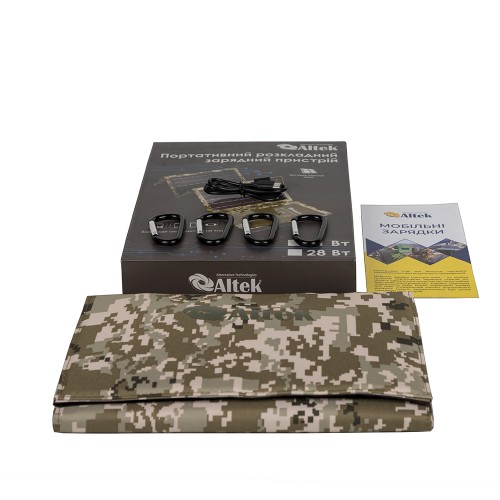 Сонячна панель ALTEK ALT-28 портативна, розкладна, джерело живлення дрібної техніки