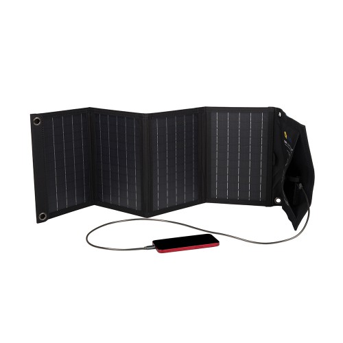 Дана сонячна панель, гарний вибір для людей котрі полюбляють активний відпочинок на природі, та зможе забезпечити електроенергією ваші електропристрої від сонячної енергії в польових умовах.