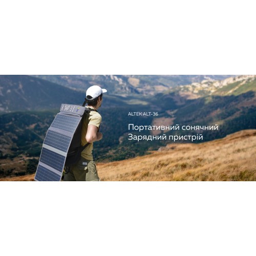 Портативний розкладний пристрій ALT – 36 оснащений USB з двома портами що, дає можливість підключити його для заряду багатьох пристроїв, включаючи мобільний телефон, планшет, павербанк, ноутбук, камера, рація тощо. Інтелектуальна технологія Smart Power+  дозволяє оптимально зарядити пристрої з максимальною ефективністю