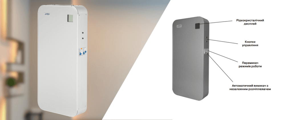 На бічній панелі стабілізатора розташовані автоматичний вимикач з незалежним розчіплювачем, перемикач режимів роботи “Стабілізація-Транзит” і кнопки управління.